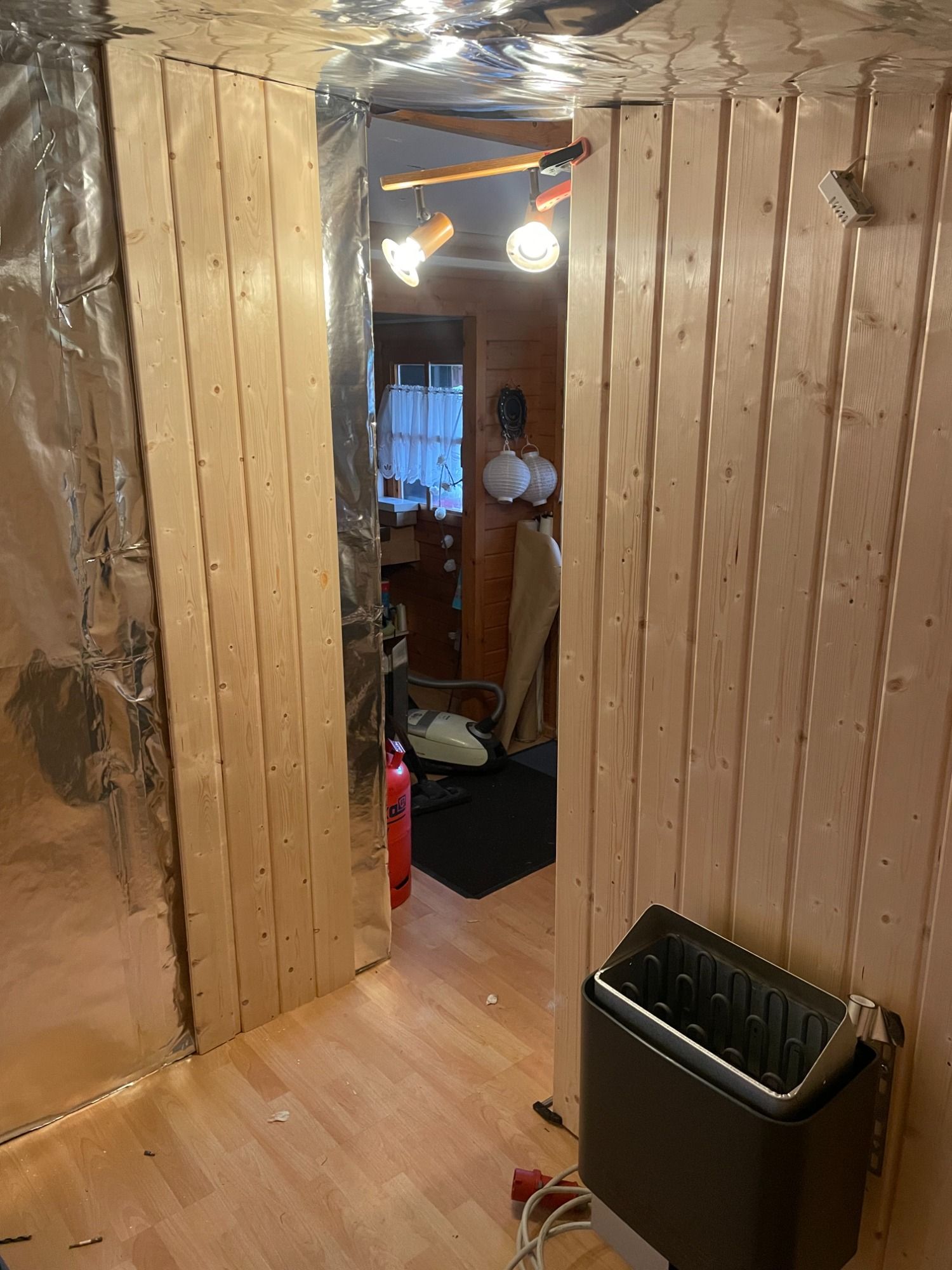 In eine bestehende Gartenlaube wurde eine Sauna eingebaut.